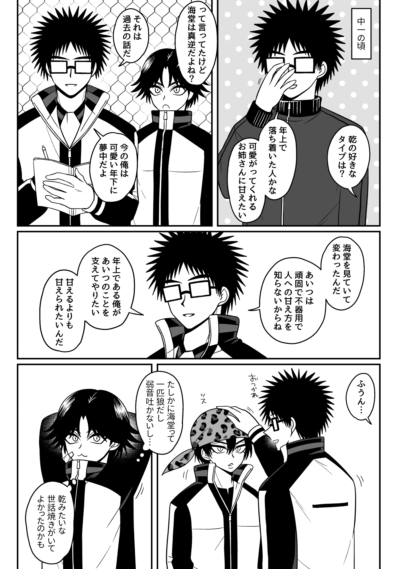 乾と付き合いはじめて女々しくなってしまったことに悩む海堂の話